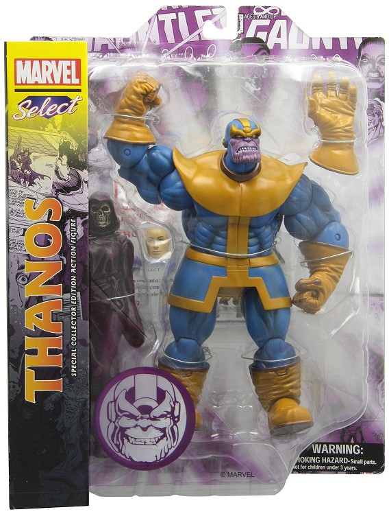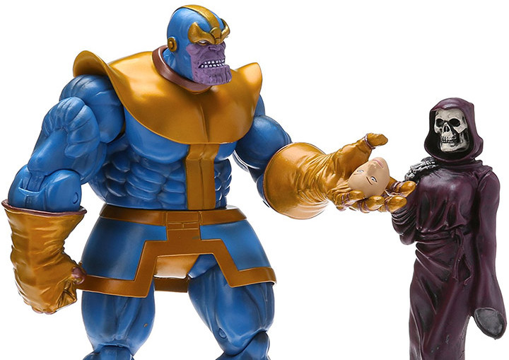 Thanos med tillhörande Infinity Gauntlet som actionfigur från Diamond Select. Medföljer gör även Lady Death.