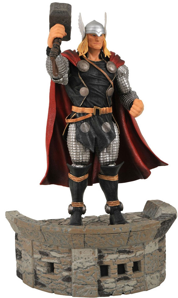Taken from J. Michael Straczynski's new Thor series, this 7-inch scale figure features the mighty Thor sporting his new chain-mail costume design! With over 14 points of articulation and a deluxe floating Asgard base, not even Loki himself can stop this legendary god as he battles a new era of enemies! Sculpted by Gentle Giant, this is one hero you can't pass up! Blister card packaging.