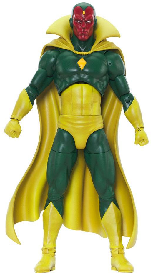 Behold... The Vision! Debuting in 1968, the synthezoid Avenger known as the Vision has since become one of the team's most stalwart members, despite being the creation of the evil Ultron. Now, the Vision joins his teammates in the Marvel Select line, with an all-new 7-inch action figure! Featuring interchangeable parts and effects, this figure features approximately 16 points of articulation and comes packaged in the famous Select blister card packaging with side-panel artwork. Designed by Eamon O'Donoghue, sculpted by May Thamtarana!