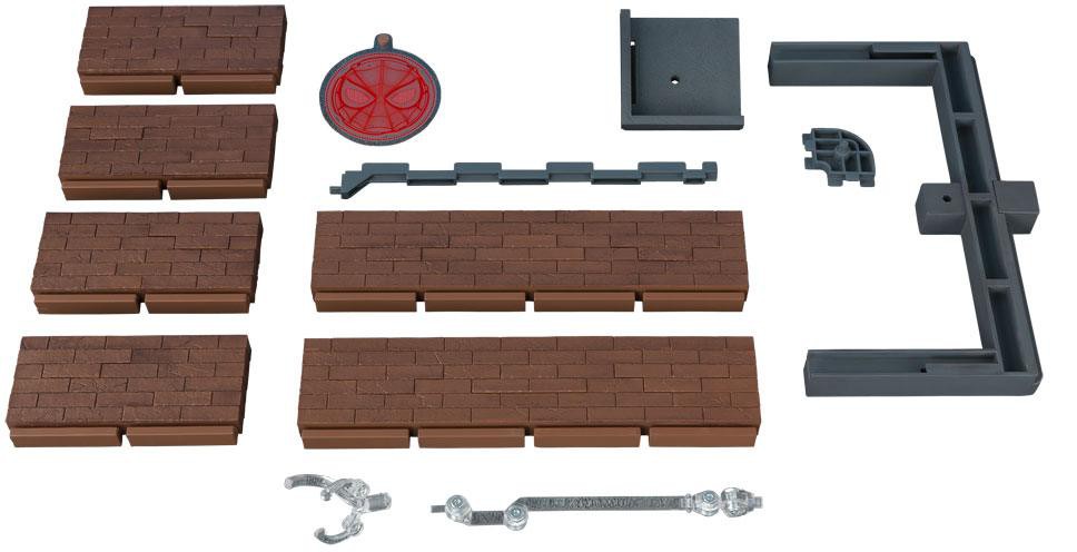 Content: (Spider-Man) Action Figure, Interchangeable Hand Parts, Interchangeable hooded head, Effect Parts Set, Tamashii STAGE Joint, Wall Parts (Large) x2, Wall Parts (Small) 2 Types x2, Base Parts, Base Hole Plug Parts, Wall Support Parts A, Wall Support Parts B, Arm, Arm Clip, Clip Base, PET Effect