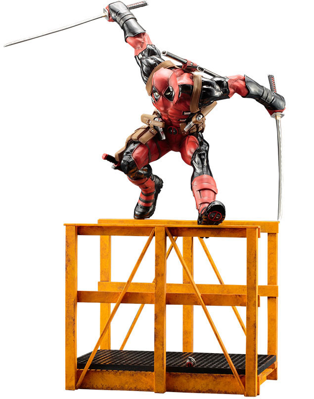 The Merc looks cool as is - but that's just the beginning. This ARTFX version includes a ton of weapons and accessories that you can use to equip the hero or his warehouse surroundings. Deadpool brings along his signature katanas, handguns, a grenade, a knife and flags.