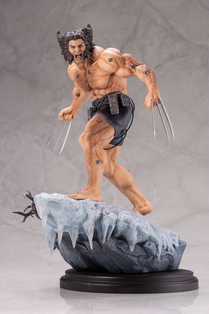 Sculpted by Erick Sosa, this finely crafted statue depicts a grieving Wolverine who has escaped from the research facility where he was subjected to Experiment X, a brutal experiment that involved bonding the mutant's skeleton with admantium and erasing his memories. The statue recreates the scene where the fugitive mutant is running down a snowy mountain road after his escape, which is considered to a crucial point in the character's storyline.