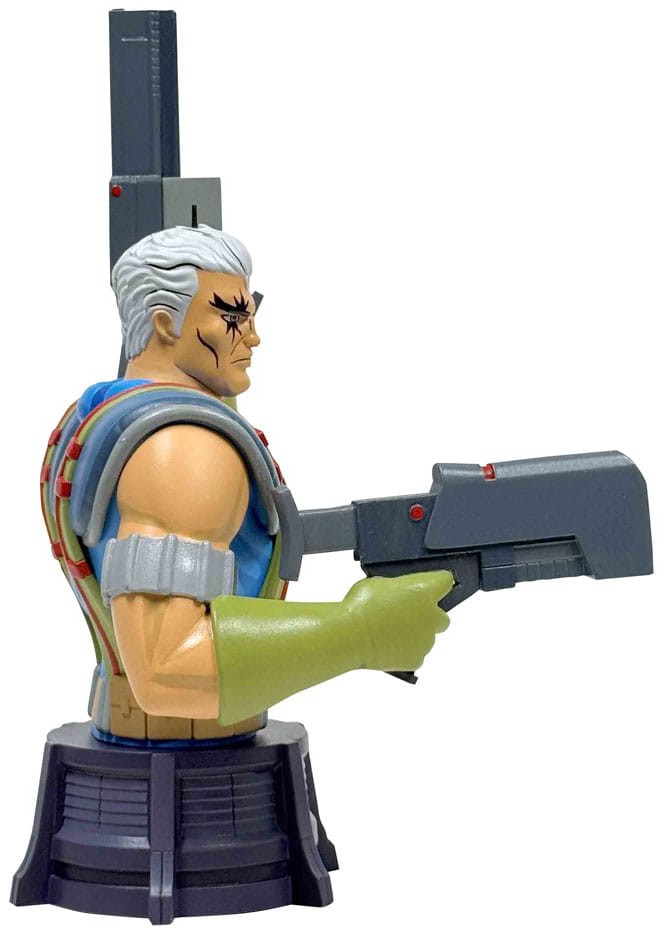 Gör dig redo att resa tillbaka i tiden till 1996! Den tidsresande mutanten Cable är den senaste X-Man som har gjorts till en resin-minibyst av DST! Baserat på hans framträdande i den klassiska X-Men: The Animated Series, har denna cirka 17-cms byst två blasters, har tecknad exakt skulptur och färgapplikationer och sitter på en teknisk piedestal. Den är begränsad till endast 3 000 exemplar och levereras i en färgglad låda med ett numrerat äkthetscertifikat. Designad av Barry Bradfield, skulpterad av Michelle Riley!