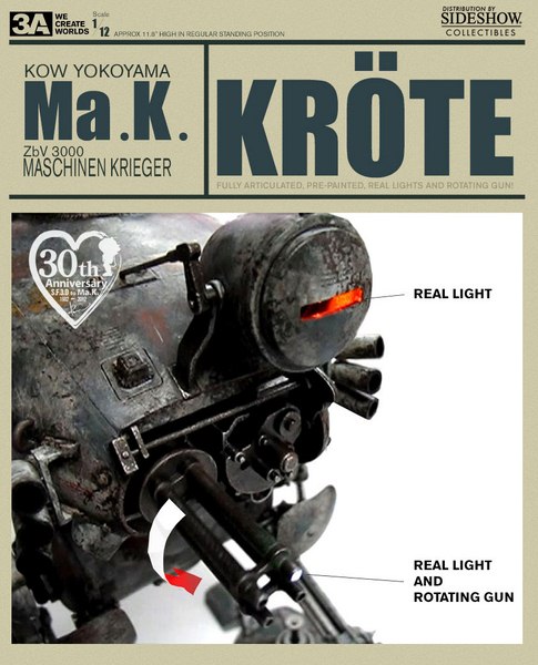 Celebrating the 30th anniversary of Japanese sci-fi illustrator Kow Yokoyama's original model, Maschinen Krieger or Ma.K, Sideshow Collectibles is proud to introduce the Ma.K Krote Collectible Figure from ThreeA.