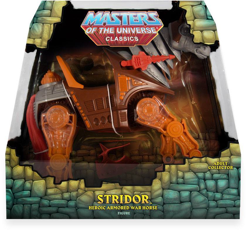 The Masters of the Universe Collector's Choice line continues with Stridor! By popular demand, Man-At-Arms' cybornetic creation, the Heroic Armored Warhorse that carried the mighty Fisto into battle is finally coming to life! Now is your chance to tame the mighty steed before he gallops off forever.