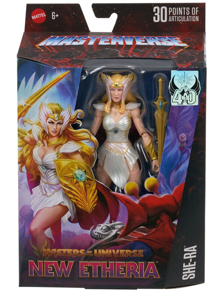 Från Mattels ”Core New Etheria”-serie kommer denna mycket välartikulerade och fullt rörliga actionfigur. Den är ca 18 cm hög och levereras med tillbehör i en fönsterboxförpackning.