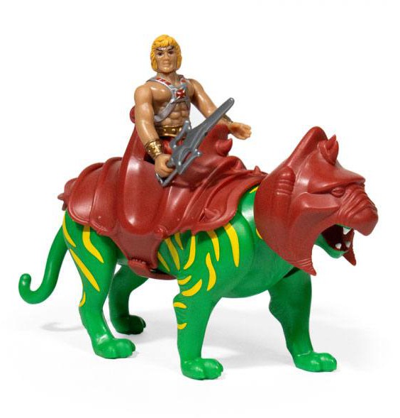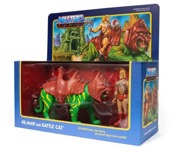 He-Man-figuren är ca 10 cm hög och kommer i en retroinspirerad fönsterkartong tillsammans med hans Battle Cat!