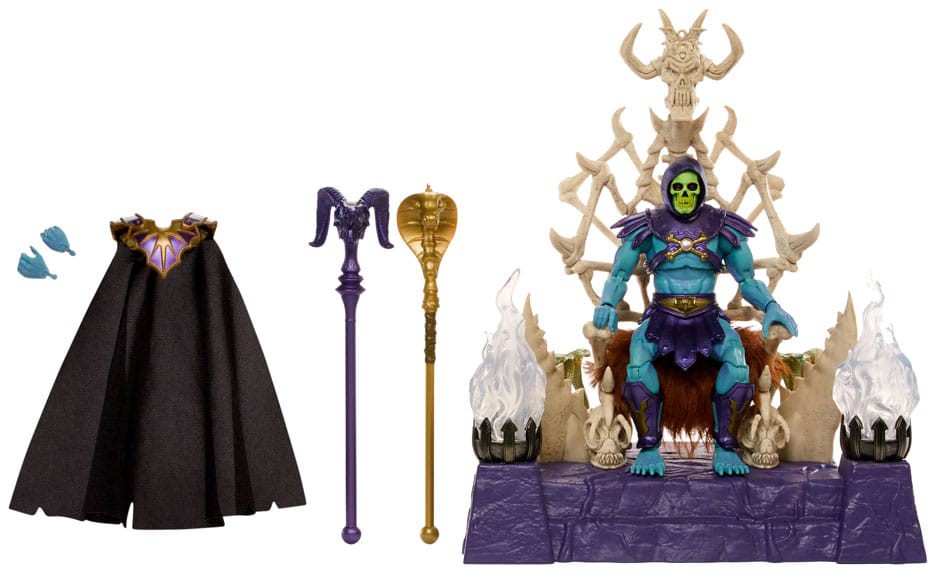 Från Mattels ”Masterverse”-serie kommer denna mycket välartikulerade och fullt rörliga actionfigur. Den är ca 18 cm lång och levereras med tillbehör och Skeletors tron.