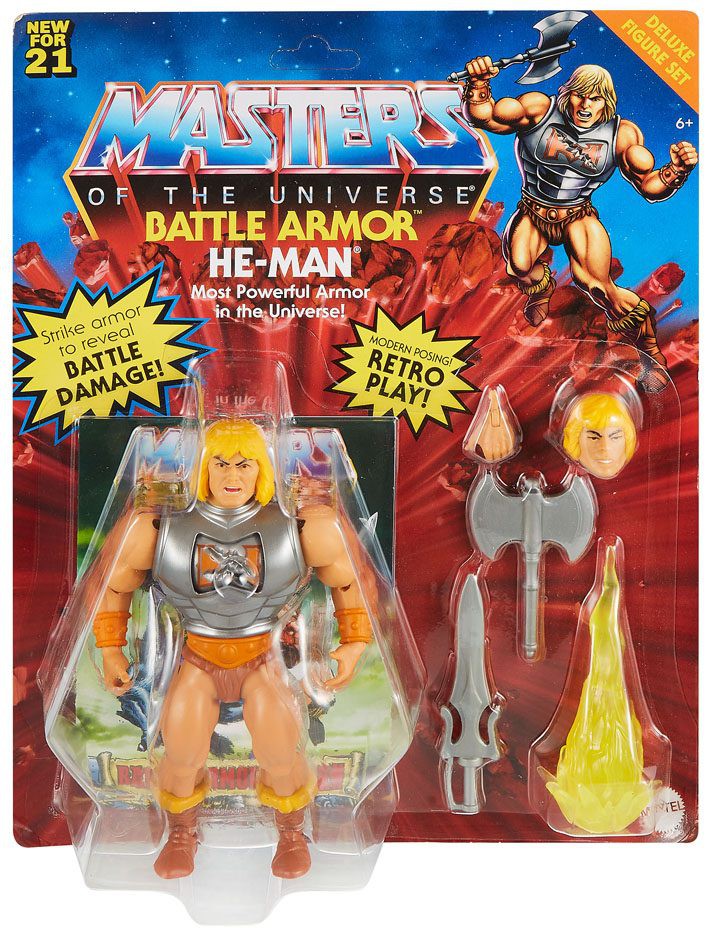 Från Mattels mycket populära Masters of the Universe Origins linje kommer denna detaljrika Battle Armor He-Man actionfigur med många rörliga leder. Figuren är ca 14 cm hög förpackad med tillbehör i en vintageinspirerad blisterförpackning.