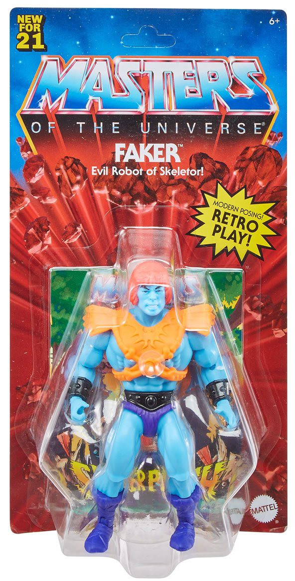 Från Mattels mycket populära Masters of the Universe Origins linje kommer denna detaljrika Faker actionfigur med många rörliga leder. Figuren är ca 14 cm hög förpackad med tillbehör i en vintageinspirerad blisterförpackning.
