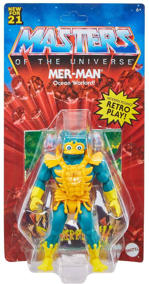 Från Mattels mycket populära Masters of the Universe Origins linje kommer denna detaljrika Mer-Man actionfigur med många rörliga leder. Figuren är ca 14 cm hög förpackad med tillbehör i en vintageinspirerad blisterförpackning.