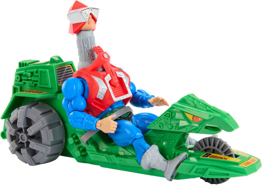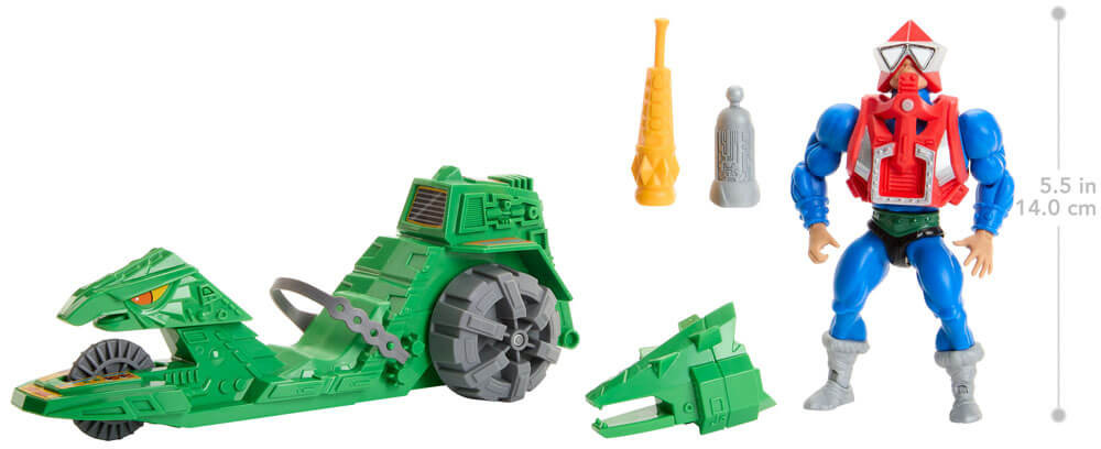 From Mattel's "Masters of the Universe" series come this highly articulated and fully posable action figure. It stands approx. 14 cm tall and comes with vehicle in a window box packaging.