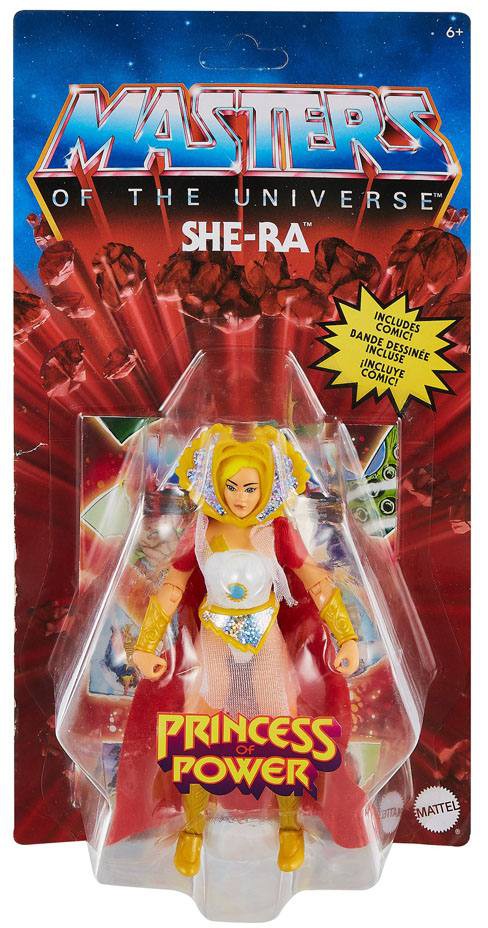 Från Mattels mycket populära Masters of the Universe Origins linje kommer denna detaljrika She-Ra actionfigur med många rörliga leder. Figuren är ca 14 cm hög förpackad med tillbehör i en vintageinspirerad blisterförpackning.