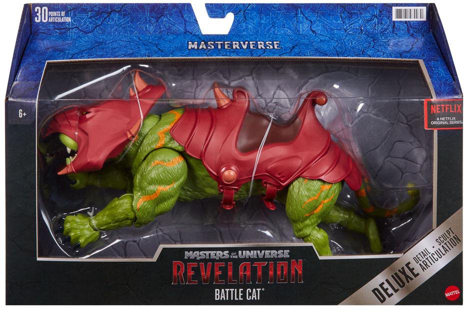 Battlecat actionfigur i Mattels "Masterverse" serie. Utrustad med många rörlig leder för oändliga poseringsmöjligheter. Figuren är baserad på Netflix serien "Masters of the Universe: Revelation".