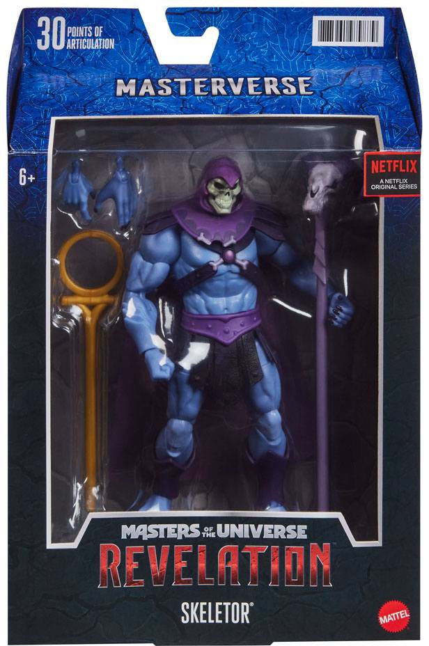 Skeletor actionfigur i Mattels "Masterverse" serie. Utrustad med många rörlig leder för oändliga poseringsmöjligheter. Figuren är baserad på Netflix serien "Masters of the Universe: Revelation".
