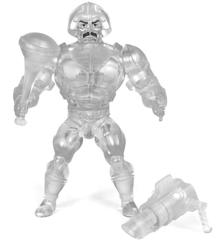 The Crystal Man-At-Arms 5.5-inch Vintage Figure comes with club and laser accessories and features a spring loaded mechanism: Turn the waist and he swings back with a punch! The packaging includes a custom character history card with the figure and has new and original art on the back of each card (Packaging is not finalized but will be posted when available).