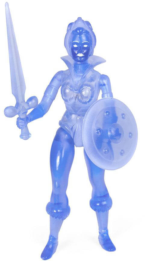 The Frozen Teela 5.5-inch Vintage Figure comes with sword and shield accessories and features a spring loaded mechanism: Turn the waist and he swings back with a punch! The packaging includes a custom character history card with the figure and has new and original art on the back of each card (Packaging is not finalized but will be posted when available).