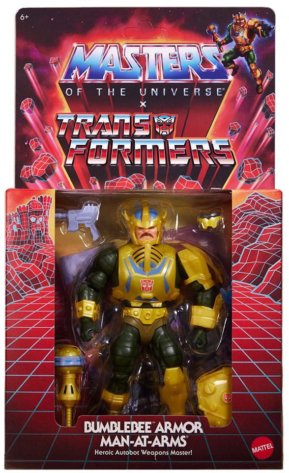 Man-At-Arms har ett nytt hemligt vapen i kampen om Eternia: Transformers-stridsrustning från ingen mindre än Bumblebee. Två av de största företagen inom actionfigurer har gått samman för att skapa Masters of the Universe x Transformers Bumblebee Armor Man-At-Arms Action Figure.