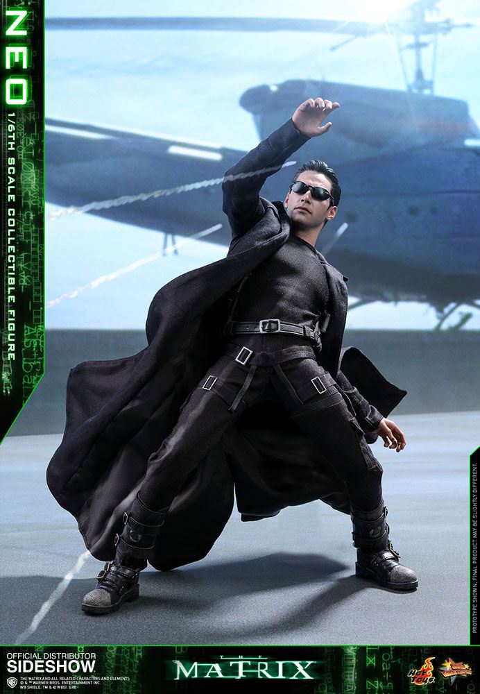 Sideshow and Hot Toys are very excited to present the highly anticipated 1/6th scale Neo collectible figure from the award-winning science fiction film The Matrix. With meticulous and careful craftsmanship, the very stylish sixth scale figure features a newly developed head sculpt highlighting a stunning likeness of Keanu Reeves as Neo in the movie, the signature form-fitting outfit and long coat with sophisticated tailoring, "lots of guns" including assault rifles, various types of submachine guns, and pistols, the iconic sunglasses, and a specially designed dynamic figure stand!