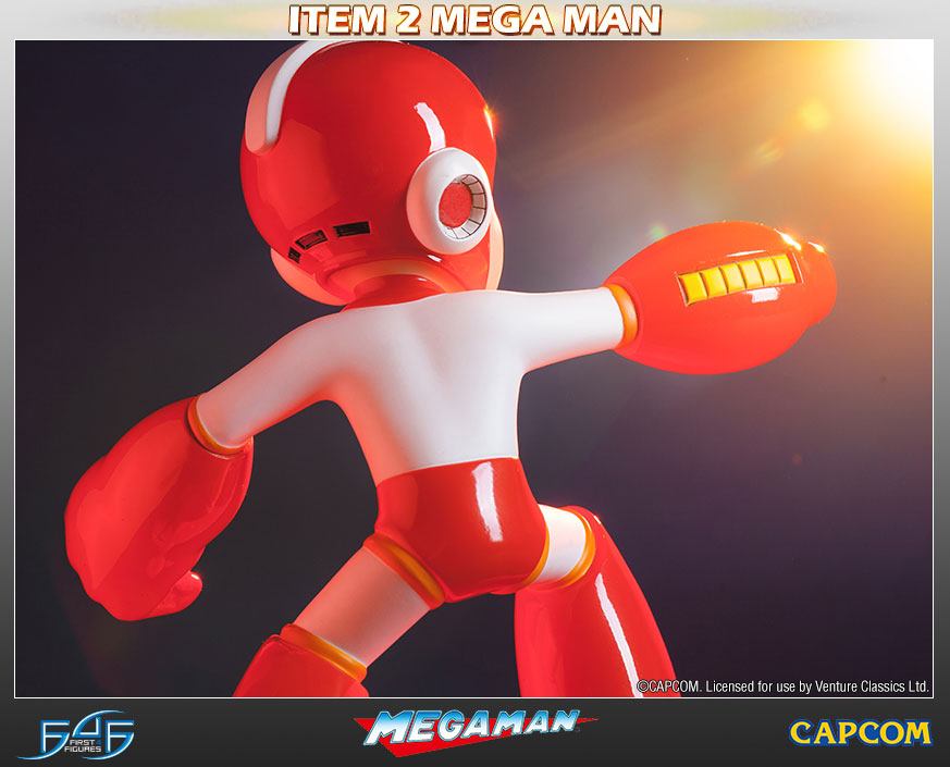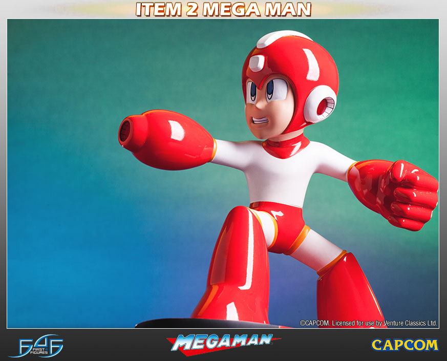First 4 Figures is proud to present Item #2 straight from the classic Mega Man 2 by Capcom! Mega Man is portrayed in his red and white armor, cruising on the board as he prepares a shot to an oncoming enemy with his Mega Buster.