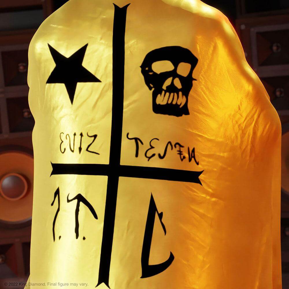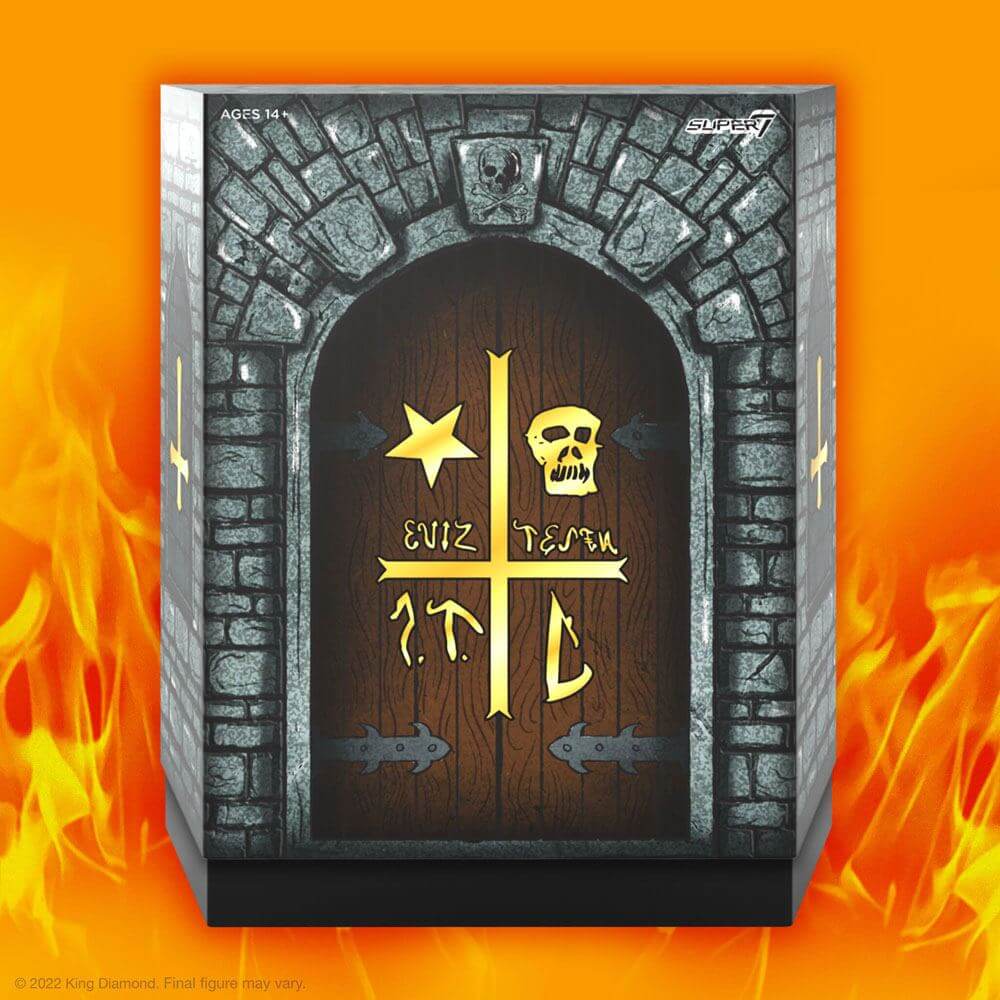 1982 inledde Mercyful Fate sin första miniturné i Europa. Turnén introducerade King Diamond till heavy metal-världen och lanserade honom som en ikon som har påverkat otaliga metalfans och band. Det var här det började! Denna ULTIMATES! King Diamond har förstklassig färg och detaljer, utbytbara huvuden och händer, hans mikrofonstativ och en tygrock som den han bar på scenen under debutturnén.