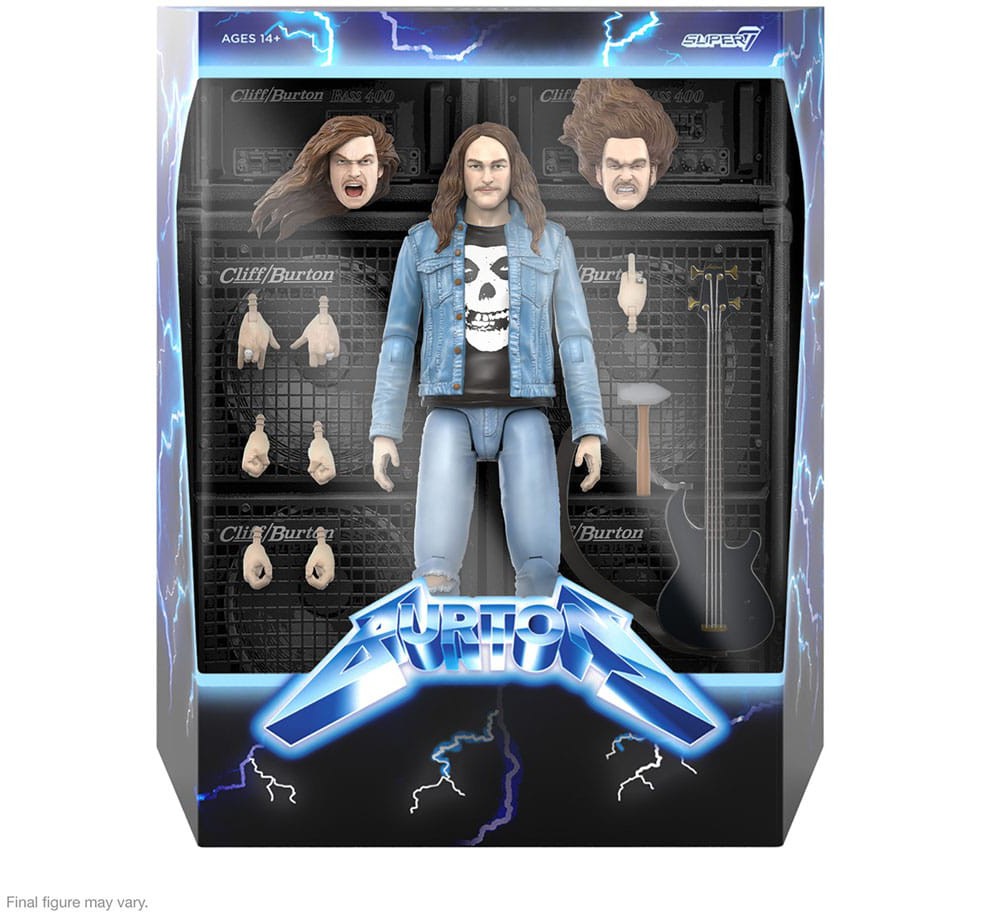 Clifford Lee Burton was born in Castro Valley, California on February 10, 1962. As "The Major Rager" bassist in Metallica, Cliff became one of the most influential musicians in Heavy Metal. His life ended suddenly on September 27, 1986 in a tour bus accident in Sweden. His legacy continues to live on as an icon of individuality. The Cliff Burton ULTIMATES! Figure captures his uncompromising image with lavish paint and details to recreate his larger than life personality and attitude. It comes with an assortment of interchangeable accessories all packaged in a deluxe slipcase-style collectors box. Proceeds from this figure will benefit the Cliff Burton Scholarship Fund.
