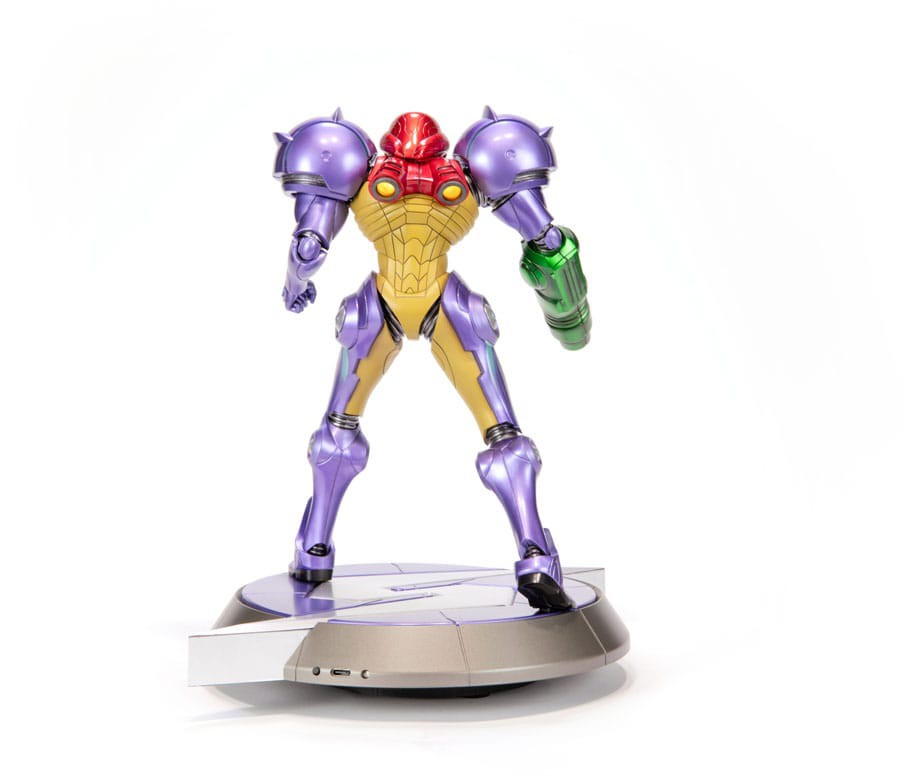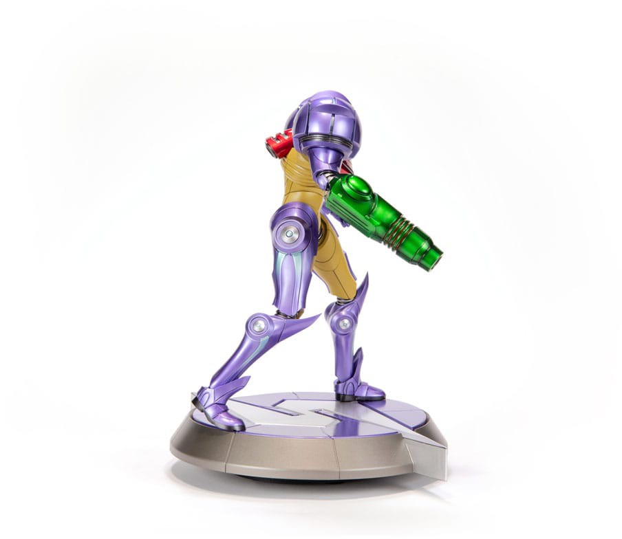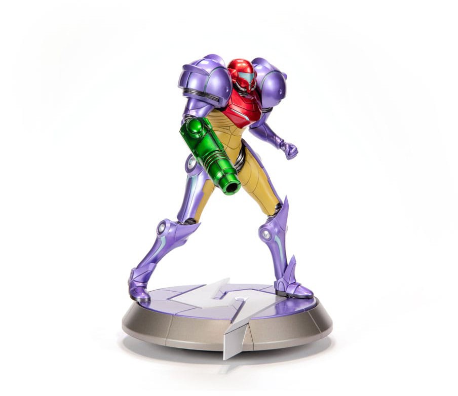 - Högkvalitativ och verklighetstrogen PVC-staty av Samus i hennes ikoniska Gravity Suit