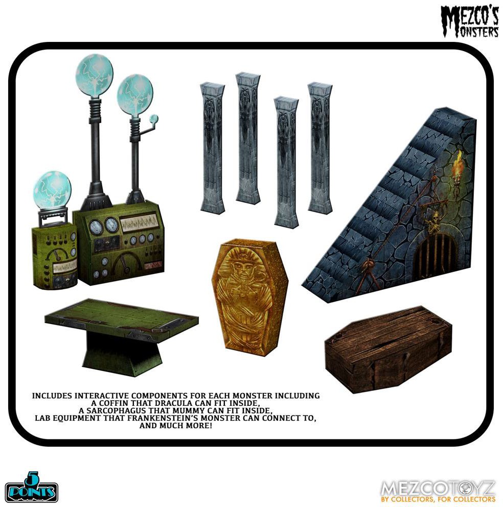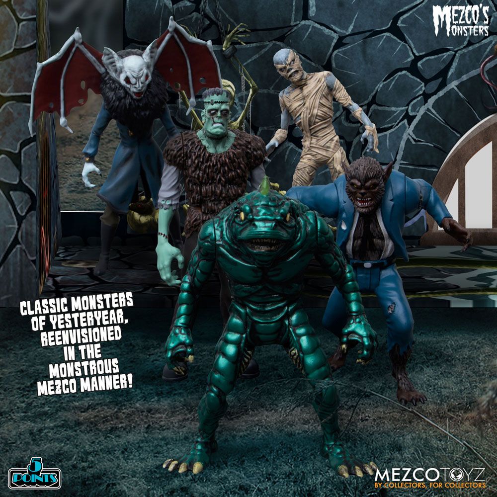 5 Points presenterar Mezco's Monsters, inspirerade av klassiska monster. Setet innehåller fem figurer, en rad tillbehör och ett diorama.