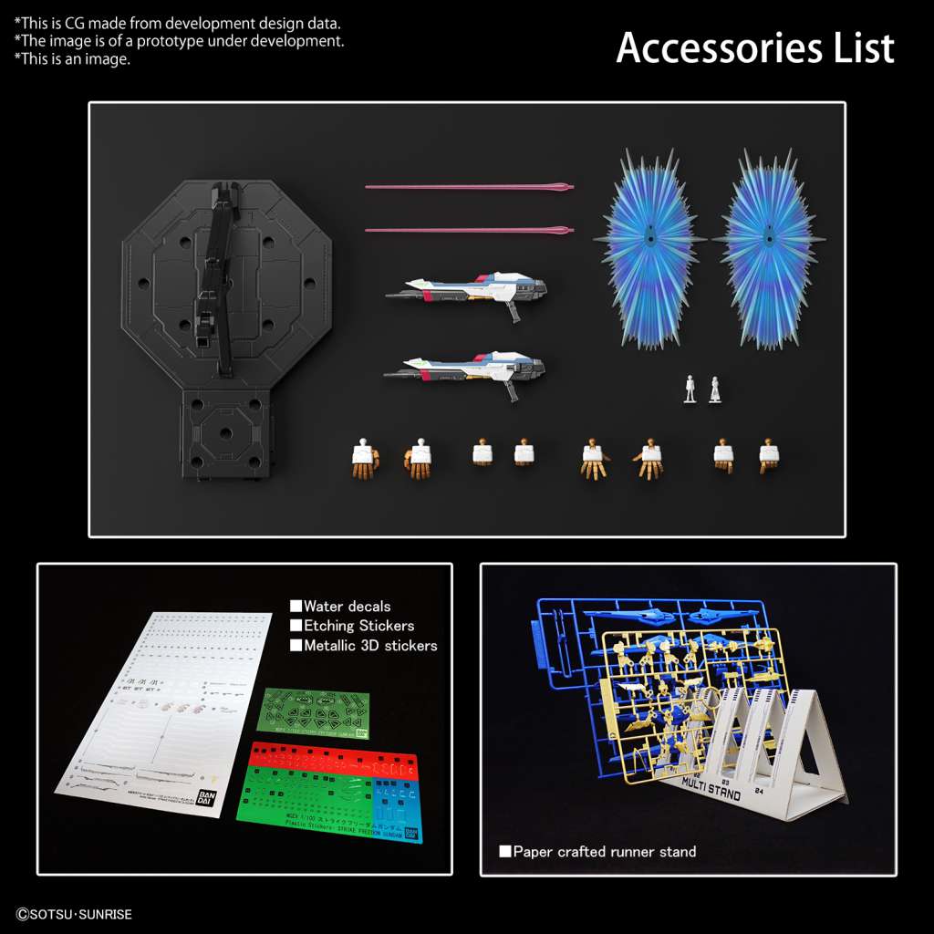 MGEX, the high-end brand renowned for its extreme expression in bringing MS Gundam to life, expands its line with the new Strike Freedom Gundam. The theme of this kit is the highest "metallic expression" in Gunpla history! Three types of special processing, two types of metallic molding, and etching stickers are used in a total of six patterns to express the metallic feel of the internal frame. Gaps in the armor pieces and use of red clear parts also help to emphasize the internal frame. Movable and equipped with a wide variety of optional weapons, this kit is simply a must-have for any fan and collector.