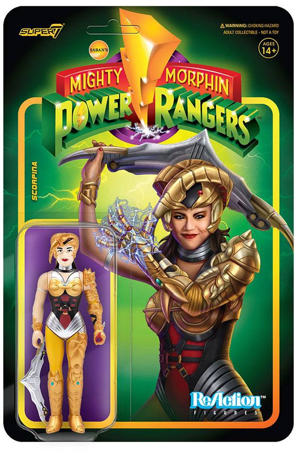 A ruthless General of Rita Repulsa's minions, Scorpina is more than a match for the Power Rangers one-on-one. This 3.75" articulated Mighty Morphin Power Rangers ReAction figure of Scorpina features scorpion armor detail and comes with boomerang sword accessory. As Evil Space Aliens go, she's your worst nightmare! So while you shouldn't think twice about adding the Mighty Morphin Power Rangers ReAction figure of Scorpina to your collection, you may want to exercise some caution in where you place her.