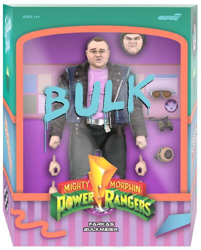 Han må vara stor och ha ännu större idéer för olika hårresande planer, men Bulk verkar i slutändan inte göra mycket mer än att skämma ut sig själv! Denna mycket välartikulerade Mighty Morphin Power Rangers ULTIMATES! Farkas "Bulk" Bulkmeier har invecklade skulpturer, förstklassiga färgdetaljer och utbytbara huvuden och händer samt en olika tillbehör, inklusive kikare och solglasögon.