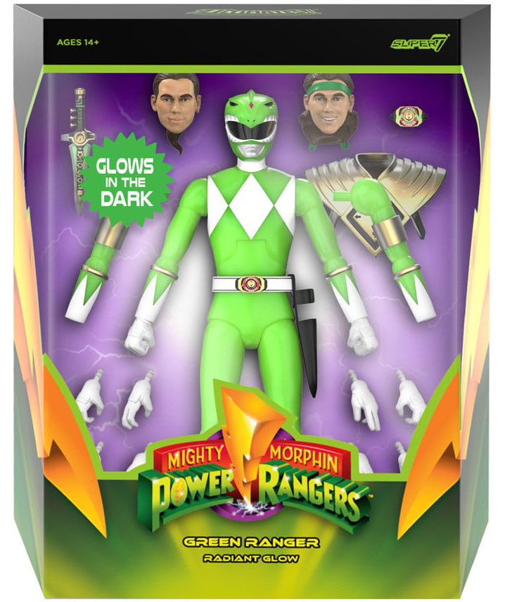 The Green Ranger's powers are slowly being drained away by Rita Repulsa! Can the rest of Power Rangers help Tommy before it's too late? This highly articulated 7" scale glow-in-the-dark Mighty Morphin Power Rangers ULTIMATES! Green Ranger is inspired by Season 1's "The Green Candle" episodes and features glow-in-the-dark effect body, intricate sculpting, premium paint detail, interchangeable heads, hands, and arms, as well as an assortment of additional accessories. You'll be powerless to resist adding the made-to-order, glow-in-the-dark Might Morphin Power Rangers ULTIMATES! Green Ranger!