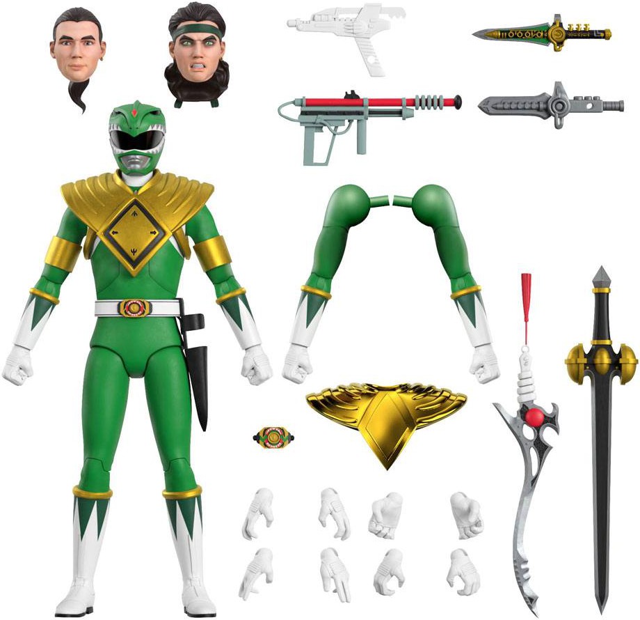 Tommy Oliver debuterade först som den onda sjätte Ranger, kontrollerad av Rita Repulsa, och besegrade Mighty Morphin Power Rangers och Megazord ensam! Det tog den kombinerade kraften från alla fem Power Rangers för att bryta Rita Repulsas förtrollning. När hans fria vilja återvände kunde Green Ranger gå med Rangers i deras kamp mot Rita Repulsa. Är Tommy fortfarande under hennes inflytande, eller är han en lojal medlem av Mighty Morphin Power Rangers-teamet? Med denna Green Ranger ULTIMATES! figur, det kan gå åt båda hållen! Denna 18 cm ledade deluxe actionfigur kommer med utbytbara huvuden - Good Tommy och Evil Tommy! - flera uppsättningar händer och en mängd olika tillbehör, inklusive Dragon Dagger, Dragon Shield och mer.