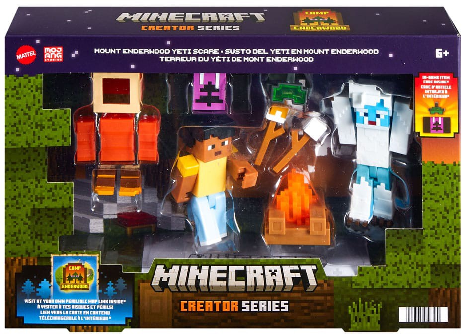 Mount Enderwood Yeti Scare Pack is an avalanche of excitement for avid adventurers! Inspired by the parkour mini game that's inside the Minecraft Camp Enderwood DLC map, these two 3.25-inch Yeti and Adventurer action figures come with loads of accessories that players can use for disguising and customizing. Pack includes 3 DLC codes! 1 for a Camp Enderwood DLC Map and 2 for exclusive in-game accessoriesa Camp Enderwood hoodie and night vision goggles!