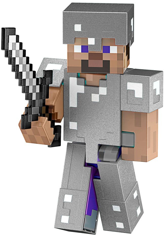 Behold -- a collector-level Steve action figure designed especially for adults in the Minecraft Community! This Diamond Level Steve is crafted in a 5.5-iinch Collector Scale and comes with a real die-cast metal Iron Armor and Sword that can be removed. Pixel perfect colors and textures adorn his head and body. This master work is sure to become highly sought after and the centerpiece of any Minecraft collection.