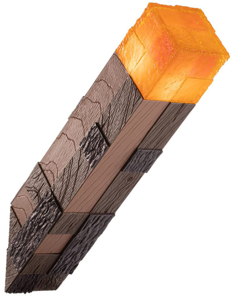 This touch-activated Minecraft Torch replica features a flickering LED to keep hostile mobs out of your bedroom, game room or office. Measuring 10" tall x 2.125" square, the torch's hinged base means it can stand alone on a desk or table or hang from a wall (mounting screws and drywall anchors included) with no additional crafting required. Powered by 3 AAA batteries (not included).