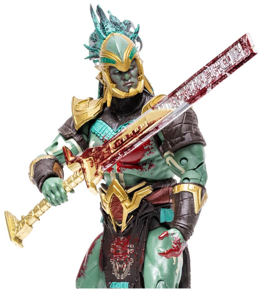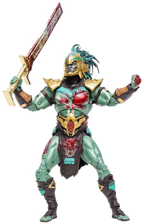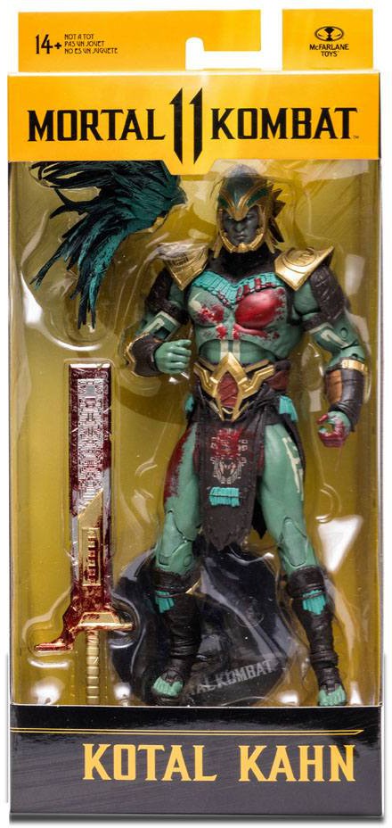 - Kotal Kahn includes his sword and a base Figure is showcased in Mortal Kombat themed window box packaging