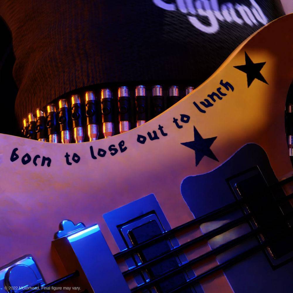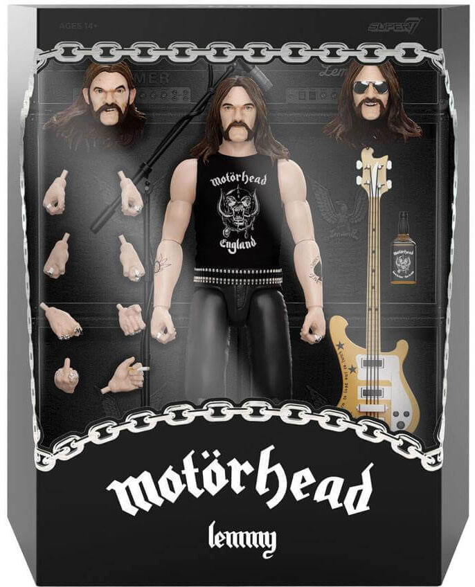 Everything Louder Than Everything Else! The latest 7" scale ULTIMATES! Figure immortalizes heavy metal legend Ian "Lemmy" Kilmister of Motörhead! The Lemmy ULTIMATES! Figure captures his iconic 1980s era with lavish paint, details, and details to recreate his larger than life personality and attitude. It comes packaged in a deluxe slipcase-style collectors box and features a badass assortment of interchangeable accessories
