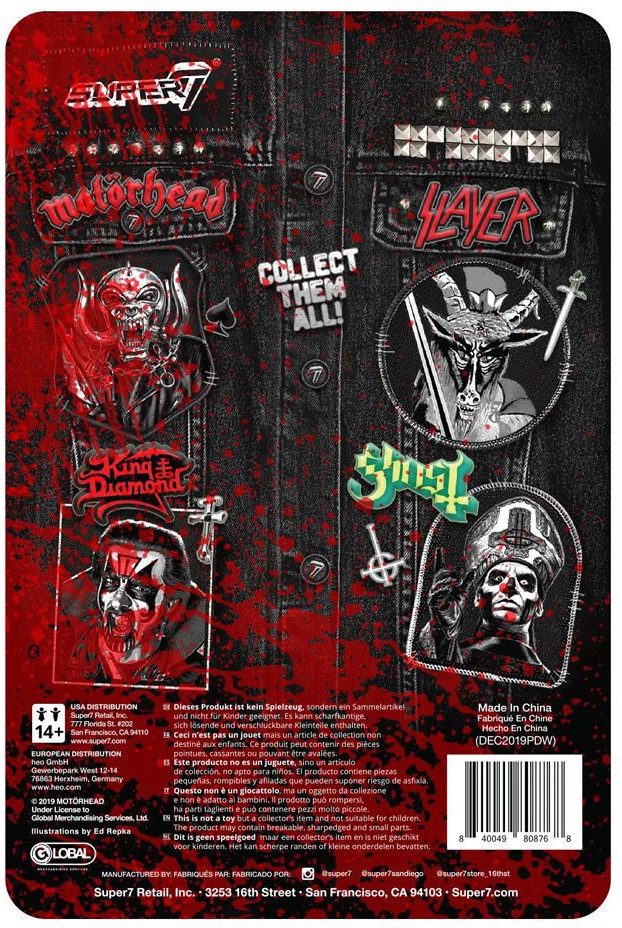 The Super7 collaboration with heavy metal legends Motörhead continues with the latest incarnation of the Warpig after an obviously eventful time with his axe. Bloody Warpig comes on an equally bloody mess cardback.