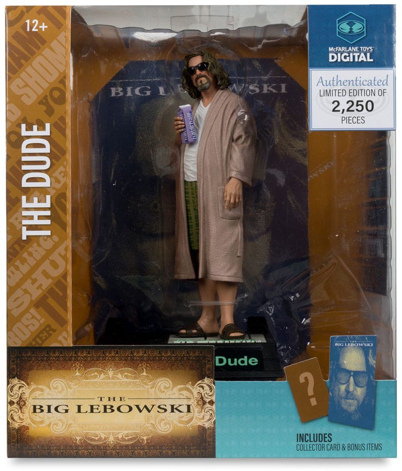 - Includes McFARLANE TOYS DIGITAL COLLECTIBLE Join The Dude on his unpredictable journey with a printed backdrop and environmental base that set the stage for his escapades, bringing the world of The Big Lebowski to life in stunning detail.