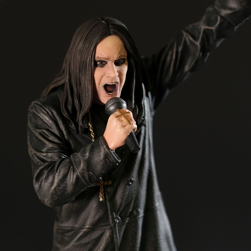 Statyn fångar Ozzys legendariska scenstil och personlighet med autentisk design och imponerande detaljer.