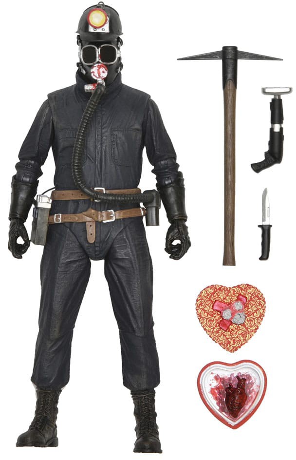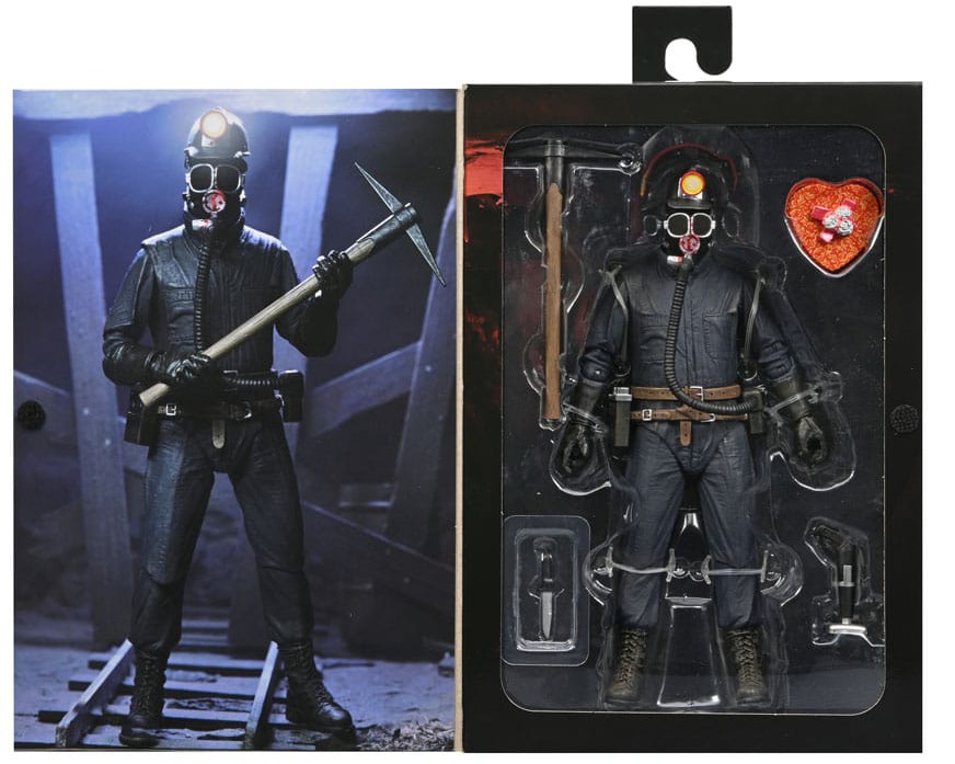 There's more than one way to lose your heart!" From the cult classic film My Bloody Valentine, this Ultimate 7" scale action figure of The Miner will bring the thrills of the movie straight to your shelf. It's highly articulated for posing and comes with pick axe, nailer, knife, candy heart box, and interchangeable hands. Comes in collector-friendly window box packaging with opening front flap that pays tribute to the original theatrical poster.