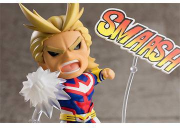 From the popular anime series "My Hero Academia" comes a Nendoroid of every Hero's idol, All Might! He comes with two face plates including his brave standard expression (with articulated eyebrows) and a serious expression for when demonstrating his full power!