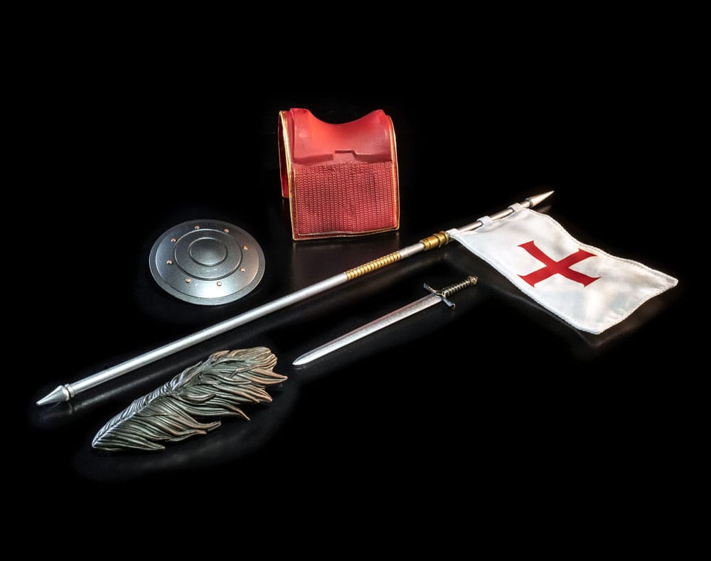 Hästkroppen under det avtagbara tempelriddar-mjukgodset har samma dekor som vår tidigare utgivna Balius-figur. Detta set innehåller också samma föremål som Balius, vilket gör detta till något av en nyutgåva av den figuren tillsammans med det nya utseendet för Deacon-karaktären.