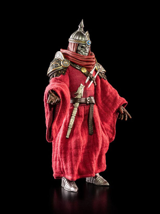 Skapular the Cryptbreaker left the Congregation many years ago. More interested in a life of excess than in bringing death to the Realm, he established the band of mercenaries known as the Sons of the Red Star. Named after a mysterious celestial body said to bring riches and power to those who worship under its light, the Red Stars have become a wildcard in Mythoss. Skapular has a connection to Attlus from a long ago meeting that helped shape both their lives. That meeting led to Attlus becoming the Noble Bear, while Skapular, and his alias Emir Casparr, became the shadowy force behind many of the Realm's unexplained disappearances and assassinations.