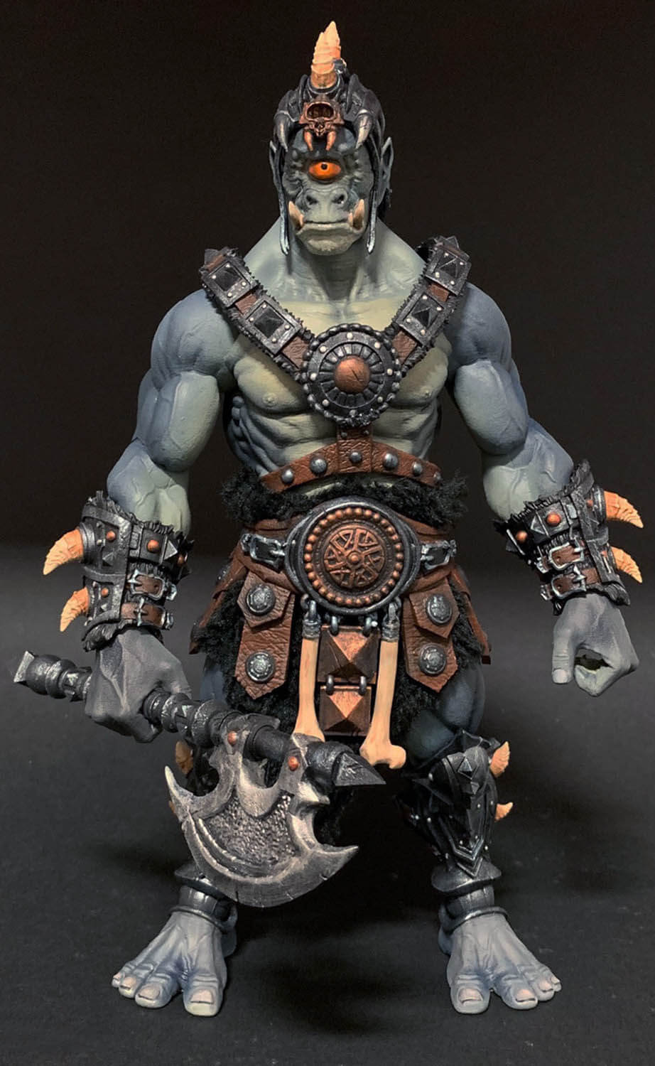 Members of the race of colossal one-eyed giants known as cyclopes usually serve as weapon smiths, builders, forge masters, and architects in Mythoss. Master craftsmen with a keen eye for detail and precision, these giant tinkerers consider it the highest honor to fashion the weapons of war for the armies of Mythoss. Argemedes serves as the Chief Overseer of the forges of Arethyr, where the hallmarks of his oversight, order and intimidation, allow him to maintain maximum productivity. But the true secret behind Argemedes' mastery of the forge comes from the experience he has gained wielding his own creations in battle. Cyclopes' single massive eye grants them the abilty to see great distances, which makes them ideal for operating long range weapons such as the ballista and trebuchet. Argemedes is no exception to this and he takes great pride in his service to the Legion of Arethyr not only as a builder, but also as a mighty warrior willng to die for his people.