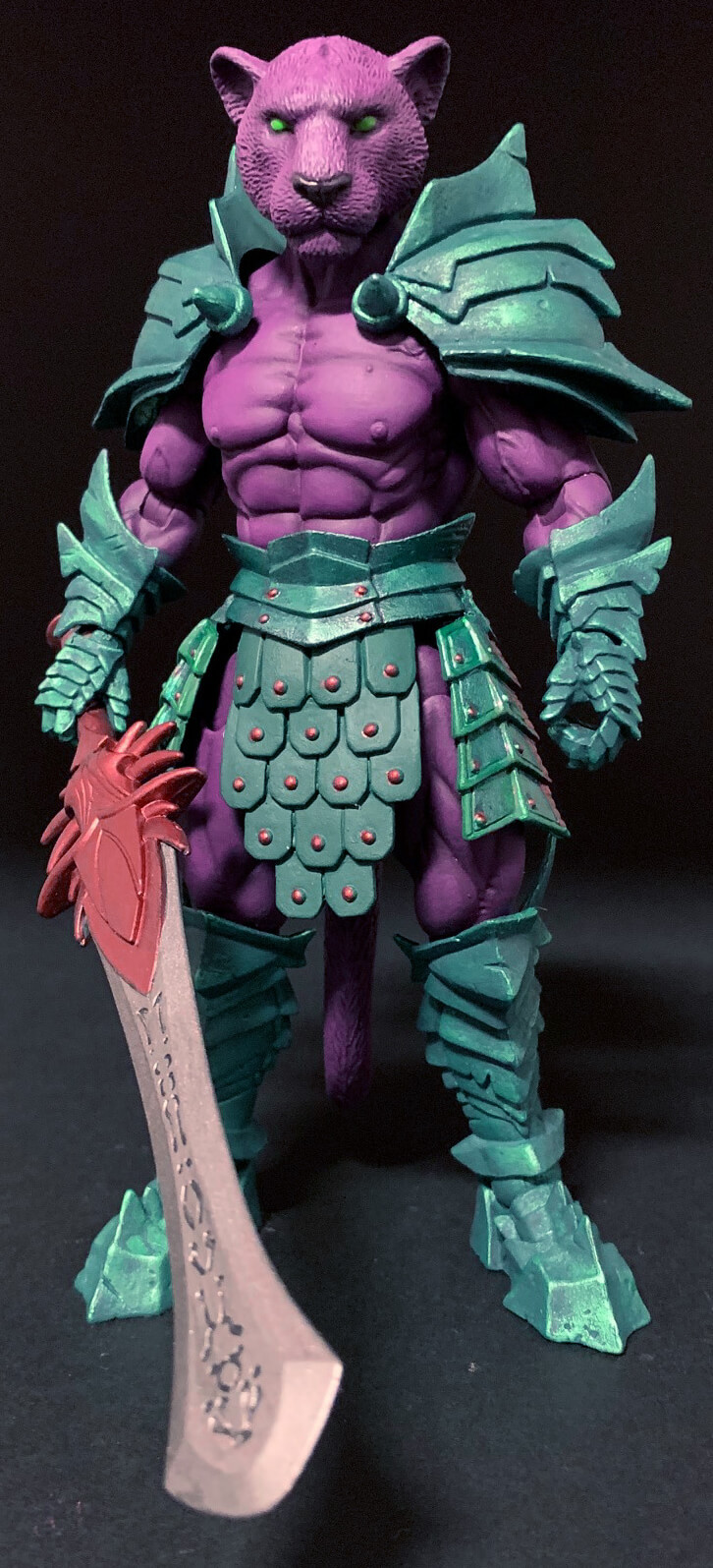 Called away from his home in the shadowed forest city of Veytheera by Gorgo Aetherblade, the evil warrior Purrrplor is as renowned for his stealth as he is for his swordsmanship. Gorwing up in a city so shaded by trees that his life has been spent in darkness, Purrrplor is well suited to scouting missions that require quiet and cunning. He played a key role in the Siege at Bjorngar, but after tasting defeat at the hands of Attlus' armies, Purrrplor finds himself battling the harsh terrain of the Wasteland, searching for refuge.