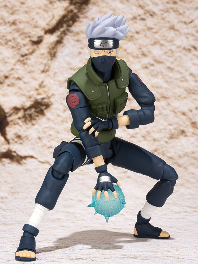 Following S.H.Figuarts Naruto and Sasuke is their cool and capable (yet sometimes tardy) sensei, Hatake Kakashi. Kakashi comes with two additional face parts to represent both his serious and laid back sides. And of course, it wouldn’t be a Kakashi figure without a certain book accessory part.