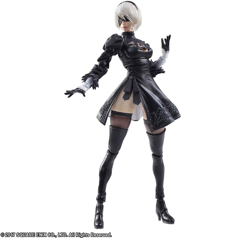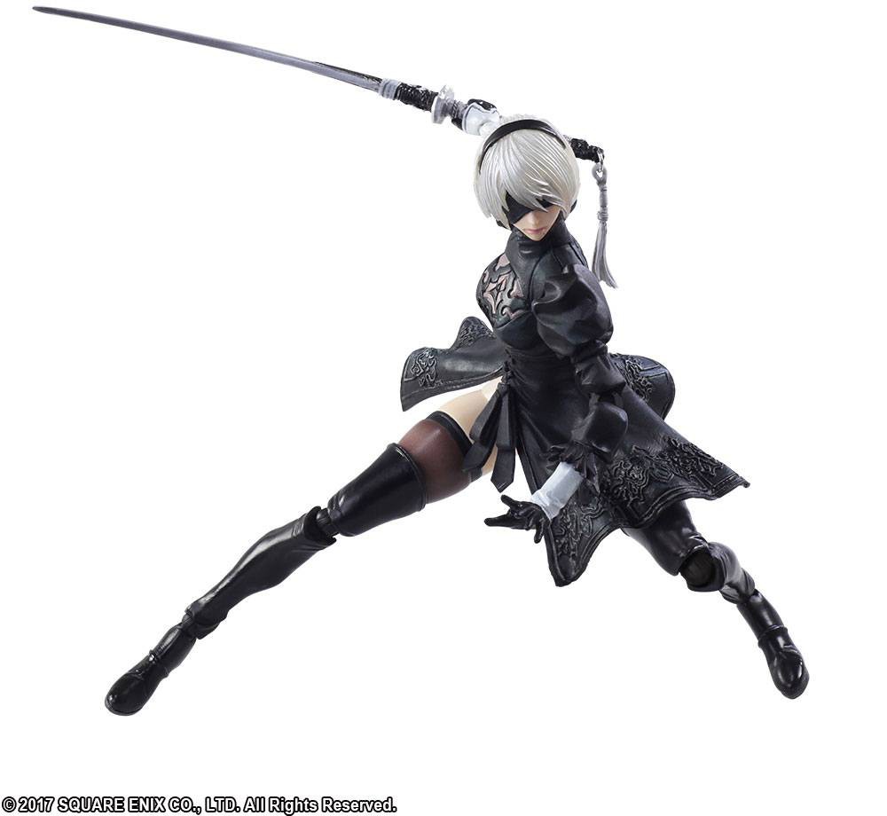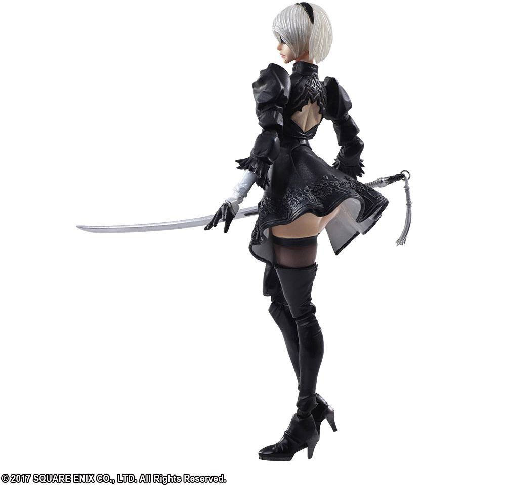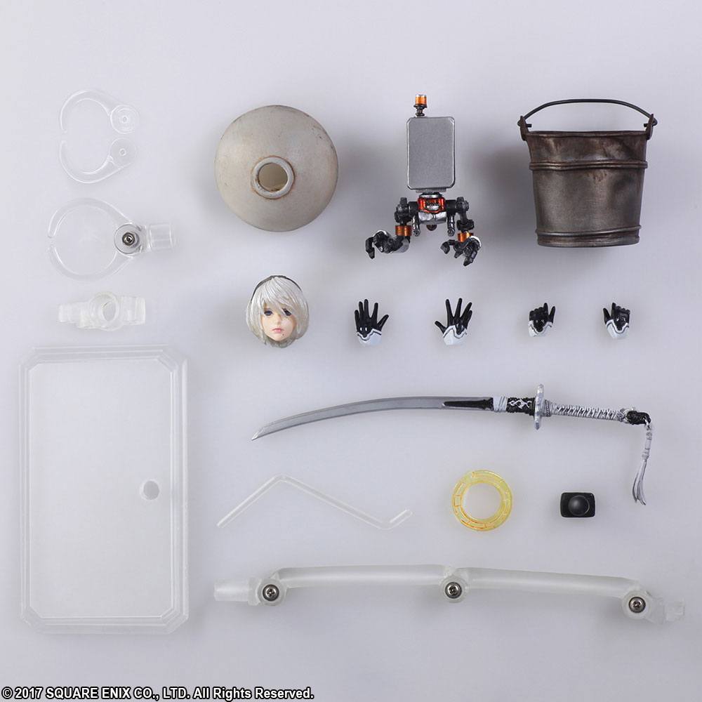 The 2B figure stands approx. 15 cm tall, Machine Lifeform - 9 cm. Both come in a window box packaging.