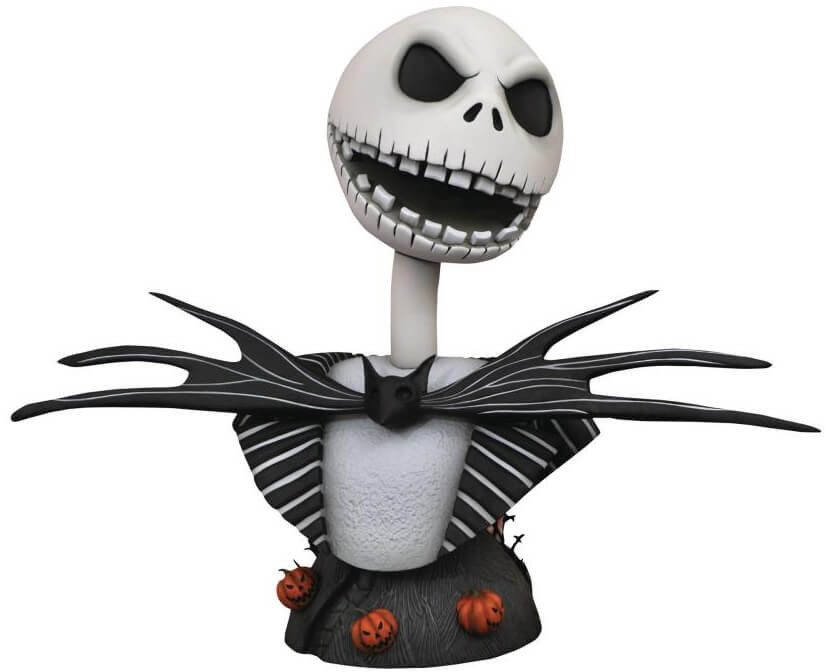 Jack Skellington ser väldigt verklig ut i den här halvskaliga bysten baserad på Tim Burtons hyllade stop-motion-film The Nightmare Before Christmas. Resin bysten är ungefär 25 cm lång och är begränsad till endast 1000 stycken exemplar och levereras förpackad med ett äkthetsintyg. The Nightmare Before Christmas Legends i 3D Jack Skellington 1:2 Scale Bust är designad av Joe Allard och skulpterad av Joe Menna.